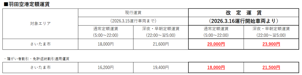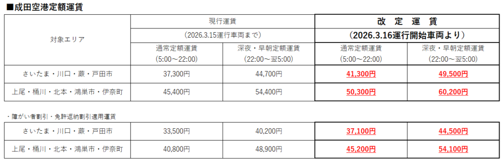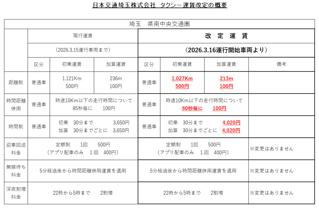 これに伴い、弊社におきましても2026年3月16日の運行車両より、下記の通り新たな運賃・料金にて営業を行ってまいりますので、ご案内申し上げます。